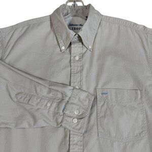 Izod Beige Summer Twill Button-Down Long Sleeve Shirt Front Pocket M