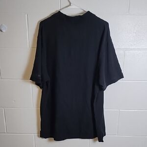 This Izod black polo shirt features a timeless design with short sleeves and a v-neck collar, crafted from a comfortable casual fabric. Its solid black color makes it a versatile choice for both casual and semi-casual occasions.