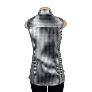 Izod Black & White Gingham Sleeveless Button-Up Top With Ruffle Front Sz SP