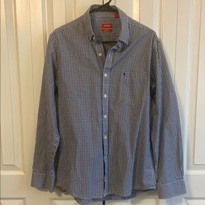 This Izod shirt features a classic button-down style in a vibrant blue color, perfect for casual occasions. Its relaxed fit and timeless design make it a versatile wardrobe staple.