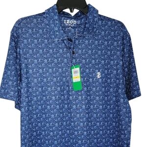 Experience the perfect blend of style and comfort with this Izod blue polo shirt. Featuring a subtle geometric pattern, this shirt adds a touch of sophistication to your casual wardrobe. The classic polo collar and short sleeves make it an ideal choice for any relaxed occasion.