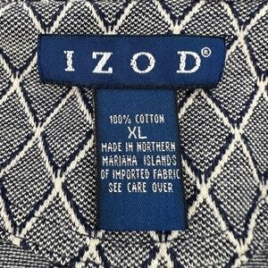 Izod Blue White Diamond Collared Short Sleeve Polo Shirt Size XL Men's