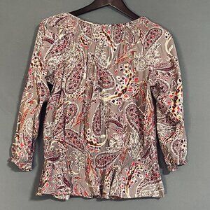IZOD Boho Smocked Peplum Blouse Women's Medium