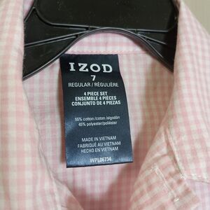 Izod Boys Button Front Shirt Size 7 Pink White Plaid Long Sleeve