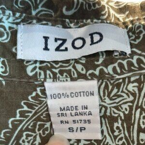 Izod Brown Paisley Button-Up Shirt – 100% Cotton Collared Short Sleeve Women’s S