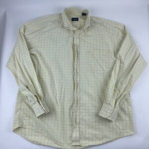 Izod Button Down Shirt Mens Large Yellow Plaid Long Sleeve