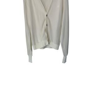 Izod Cardigan White Vintage Academia Preppy Schoolgirl Button Up Knit. This vintage Izod cardigan is the perfect addition to your wardrobe! In a crisp white knit, it features a classic button-up design that embodies academia and preppy schoolgirl style. Perfect for layering, this medium-sized cardigan is versatile and chic. The cardigan is in good condition and ready to wear! Grab this timeless piece today!