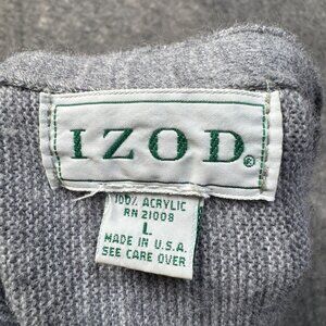 Izod Cardigan Sweater Mens L Gray Button Up USA VTG Grandpa Grunge V Neck Knit