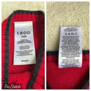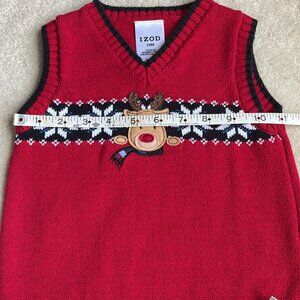 Izod Christmas Reindeer Snowflake Outfit Sweater Vest Shirt Pants Size 24 months