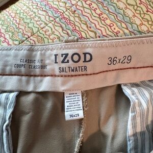 These Izod Khakis chinos feature a classic straight-leg cut and a flat front design, offering a versatile and professional look. Crafted from a comfortable cotton, they are perfect for business casual settings.