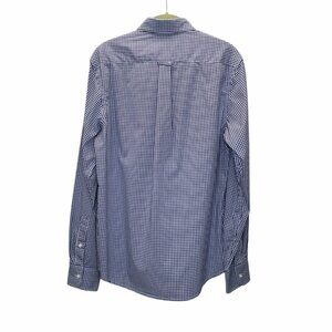 Izod Dress Shirt Men Medium Blue White Check Slim Fit Long Sleeve Classic Preppy