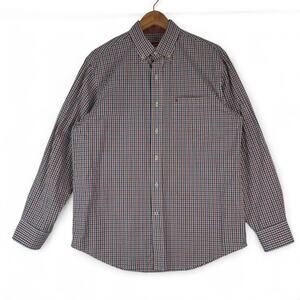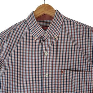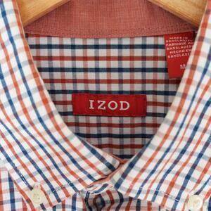 Izod Dress Shirt Mens M Red White Blue Flip Cuff Long Sleeve Button Down Cotton