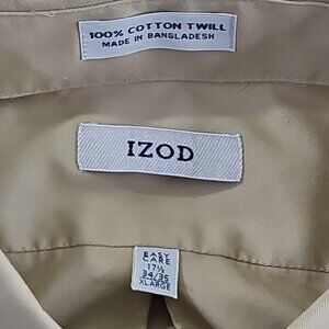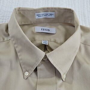 Izod Easy Care Long Sleeve Cotton Twill Shirt Men's XL Tan Button-Up EUC LN