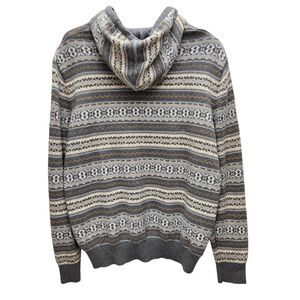 Izod Fair Isle Style Hooded Sweater Mens XXL Gray Tan Stripe Long Sleeves Casual