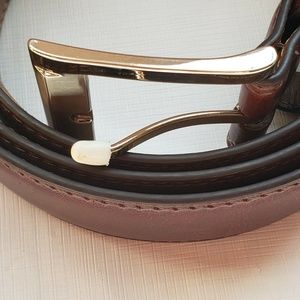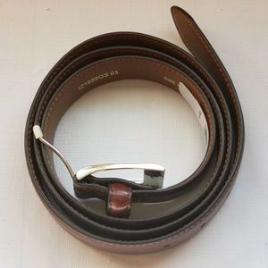 Finishing touch. Double-stitched details. Does not reverse. Polished silver-tone buckle. Durable leather construction, 1 3/8-inches wide, Wipe clean with damp cloth, Imported