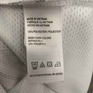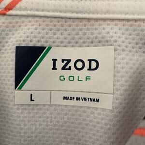 The Izod Golf 1/4 Zip Polo Shirt for women in size large features a classic striped design in gray, making it suitable for both activewear and casual occasions. This lightweight and breathable polo shirt is made from 100% polyester knit fabric, with a quarter zip closure and collared neckline. It is designed for moisture-wicking performance, perfect for the summer, fall, and spring seasons. The shirt also includes a logo accent and is machine washable for easy care. With its regular fit and versatile style, this polo shirt is a great choice for golf or everyday wear.