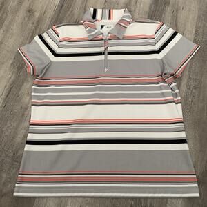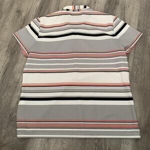 Izod Golf 1/4 Zip Polo Shirt Womens Large Gray Striped Short Sleeved Collared