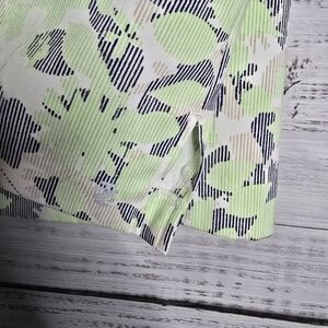 Izod golf floral skort with pockets and neon green shorts underneath. This skort has small slits on each side and zips and clasps on the side. Skort is very comfortable. Womans size 12. No rips, holes, or stains.