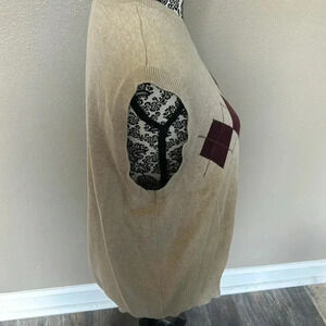Izod Golf Men's Argyle Sweater Vest V Neck Size Large 100% Cotton Tan ⭐