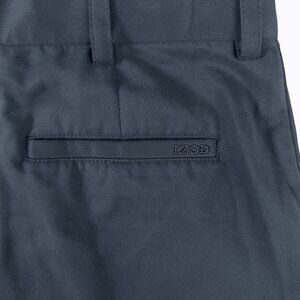 Perfect for a round of golf or a casual day out, these Izod Golf chino shorts combine classic style with modern performance. The rich navy blue color and pleated front give them a timeless, preppy look, while the 100% polyester fabric ensures they are lightweight and comfortable for all-day wear. With a zip and button closure, belt loops, and a practical array of front and back pockets, these shorts are a versatile and essential addition to your athleisure or casual wardrobe.