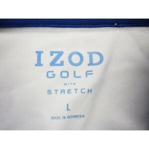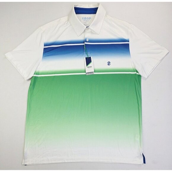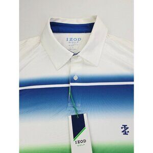 Izod Golf Stretch Size Large Mens White Green Blue Colorblock UPF-15 Polo NWT