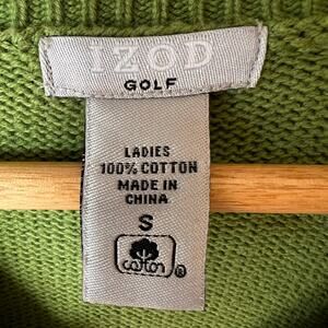 Izod Golf Sweater Womens Size Small Pink Beige & Green Argyle V Neck 100% Cotton