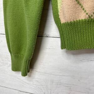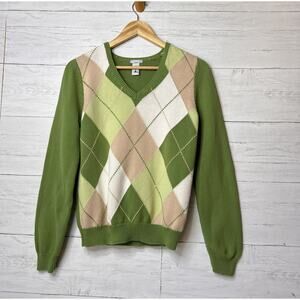 - Izod Golf Sweater Womens Pink Beige & Green Argyle V Neck 100% Cotton