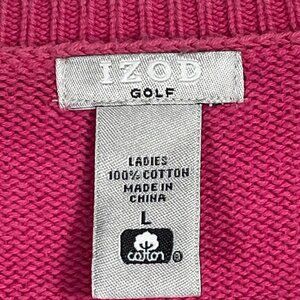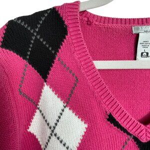 Izod Golf Vintage Argyle Sweater Pink 100% Cotton Long Sleeve Sporty Women Large