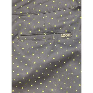 The is a pair of Izod Golf Women’s Shorts in navy with a polka dot pattern, designed specifically for golfing. These athletic shorts in size 12 are made to provide comfort and performance on the golf course. The navy color and polka dot pattern add a stylish touch to this functional and practical golf clothing item for women.