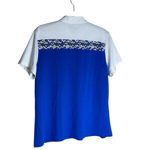 Izod Golf Women's XL White & Blue Short Sleeve Polo Shirt With Chevron Print & N