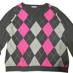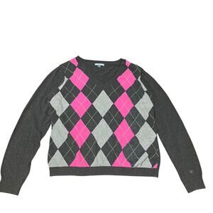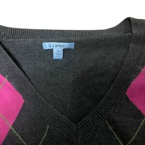 Izod Gray Pink and Green Argyle Sweater Size XL