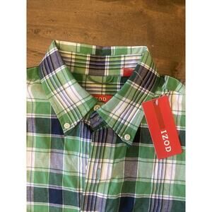 Izod Green Plaid Long Sleeve Button Up New With Tags Size Small Twill