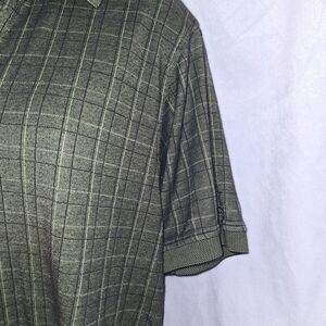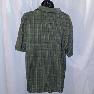 This Izod polo golf shirt features a classic plaid design in shades of green, offering a timeless and versatile look. Made from a comfortable cotton-blend fabric, it's perfect for everyday wear. The collared neckline and short sleeves add a touch of sophistication to this casual staple. pit to pit size is 23" top of shoulder to bottom hem is 27" bundle more items for bigger deals Bin-145