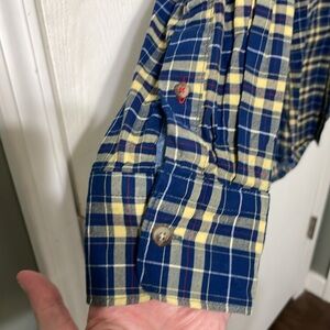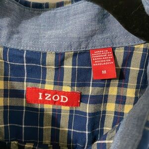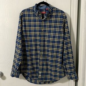 Izod Heritage Tartan NWOT Plaid Navy & Yellow 100% Cotton Button Down Sz Medium