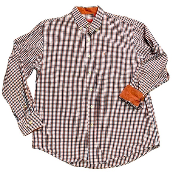 Izod Men's Blue and Red Checkered Long Sleeve Button Up Collared Shirt Size L