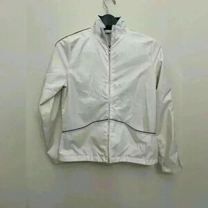 Izod Jacket Windbreaker XFG Full Zip Golf Jacket White Black Stripes Size S