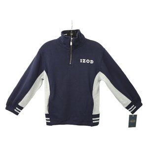 Izod Jeans Quarter Zip Pullover Sweatshirt Top Boys Size S/8 Navy Blue Gray NEW