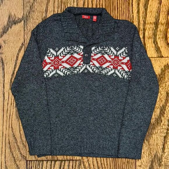 Izod Knit Festive Holiday Style Quarter Button Polo Sweater
