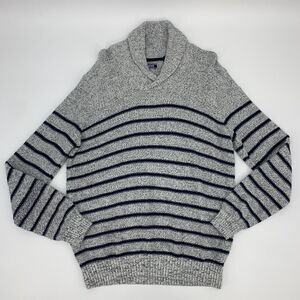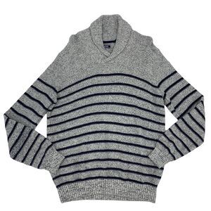 Izod Knit Sweater Mens M Medium Striped Cotton Blend Shawl Collared Pullover