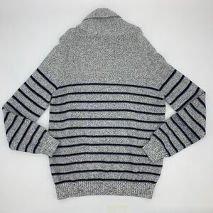IZOD KNIT SWEATER MENS M MEDIUM STRIPED COTTON BLEND SHAWL COLLARED PULLOVER