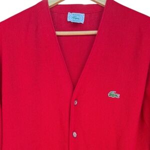 Izod Lacoste 80s Red Knit Cardigan Sweater Sz L