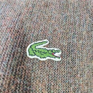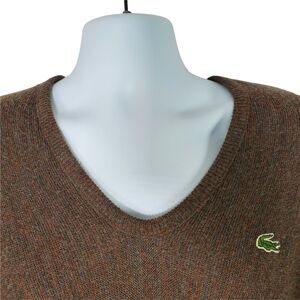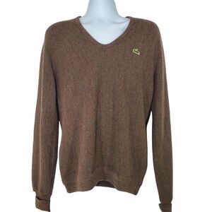 Izod Lacoste Mens Large Sweater Brown Pullover V Neck Retro 80s 1980s Vintage