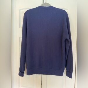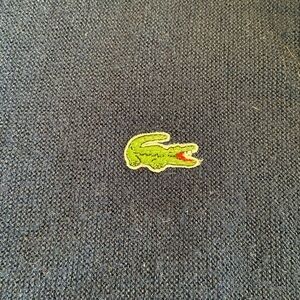 Classic navy cardigan by Izod. Features button-up front and iconic logo. Ideal for layering.