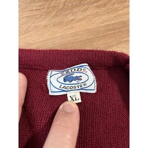 Izod Lacoste Sweater Red XL Pullover V Neck Blue Alligator Vintage USA ILGWU