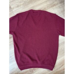 Embrace the classic appeal of the 1970s with this Izod Lacoste red pullover sweater, a timeless addition to any wardrobe. The distinctive V-neck design, accentuated by the iconic blue alligator logo, offers a touch of retro elegance. Crafted from cozy acrylic, this sweater is perfect for layering or as a standout piece on cooler days.