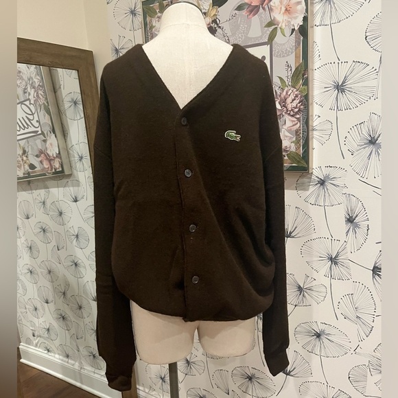 Izod Lacoste XL Brown Cardigan Sweater vtg