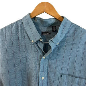 Izod Light Blue Plaid Button Up Shirt XXL Long Sleeves Collared Front Pocket Top