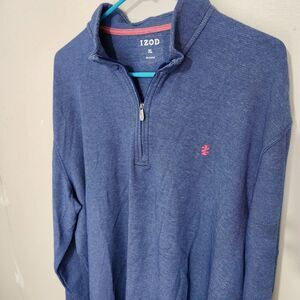Izod Long Sleeve Polo Shirt For Men Size XL Blue Color Zip On Front