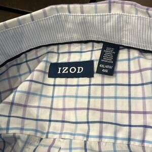 Izod Long Sleeve Window Pane Button Down Collared Shirt Size 4X Preppy Business