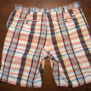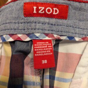 Izod Madras Patchwork Plaid Shorts – Blue/Pink, Size 38, 100% Cotton